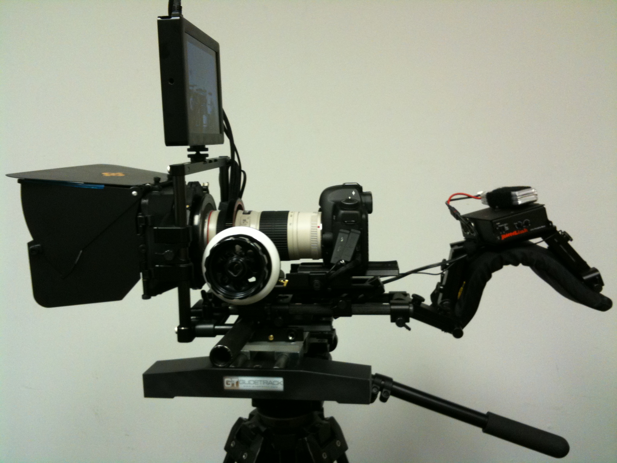 5D Mark II with Cinevate DSLR rig, juicedLink CX231, SmallHD DP1 and Glidetrack HD on a Bogen 516/3192